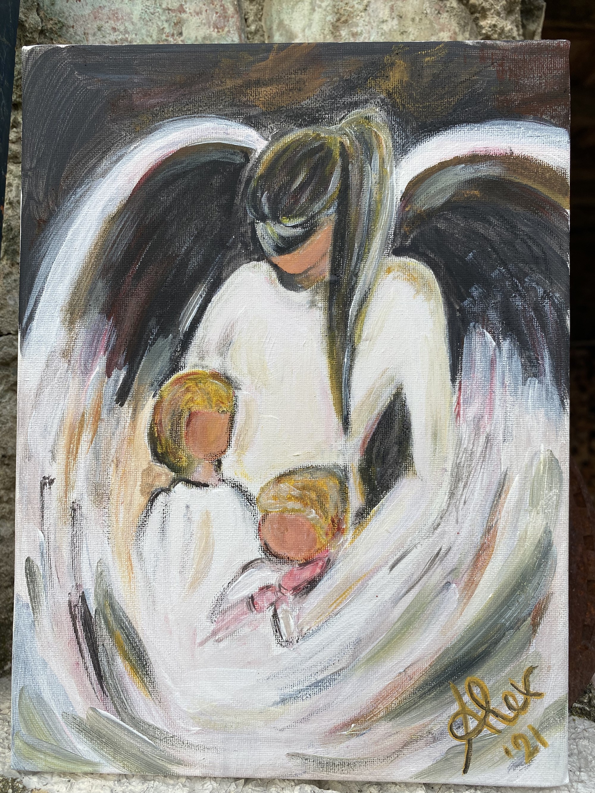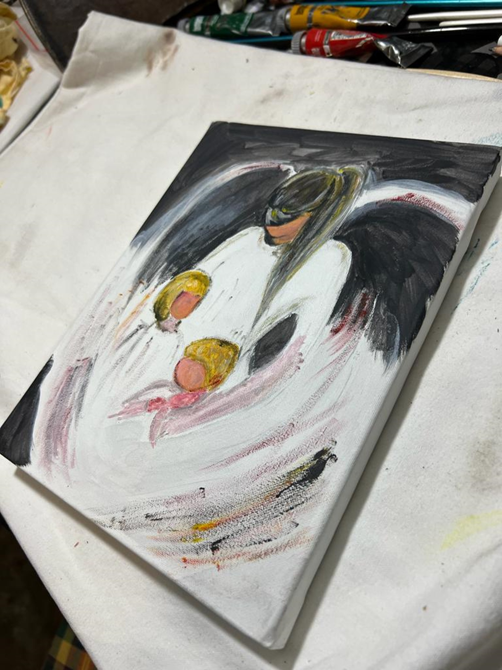 Un Angelo che protegge i bambini Acrilico su tela 24 x 30 cm