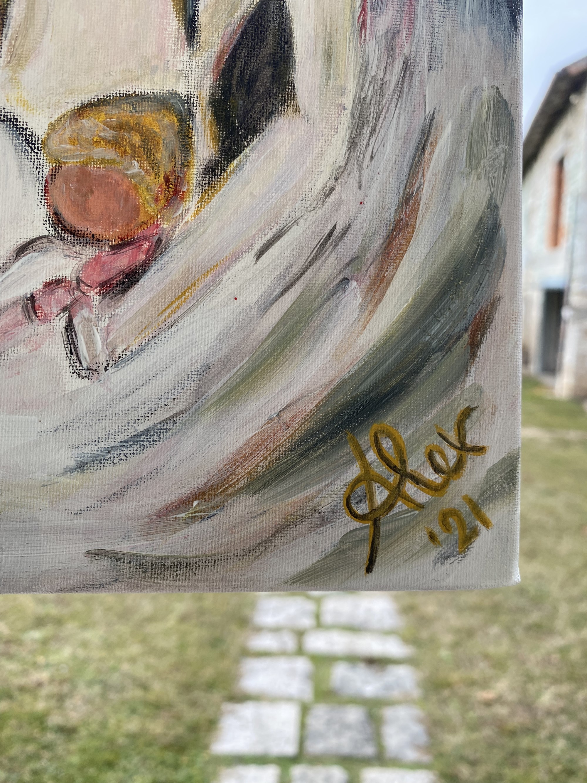 Mi piace pensare che ogni bimbo abbia un suo Angelo che lo protegge e qui ho voluto rappresentare esattamente questo preciso momento.