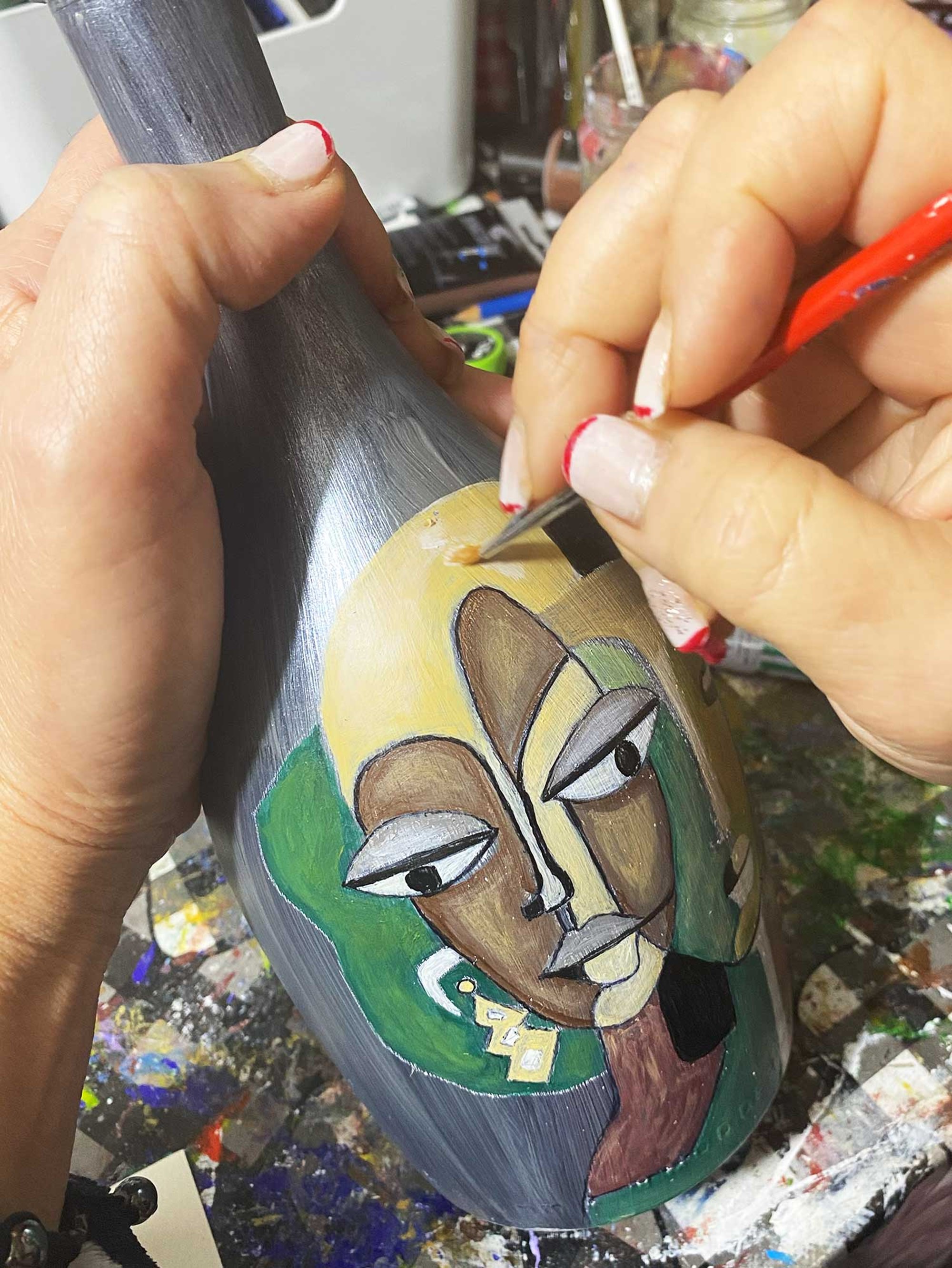 Ho voluto dipingere questa bottiglia lasciandomi guidare dal cuore e dalla natura.