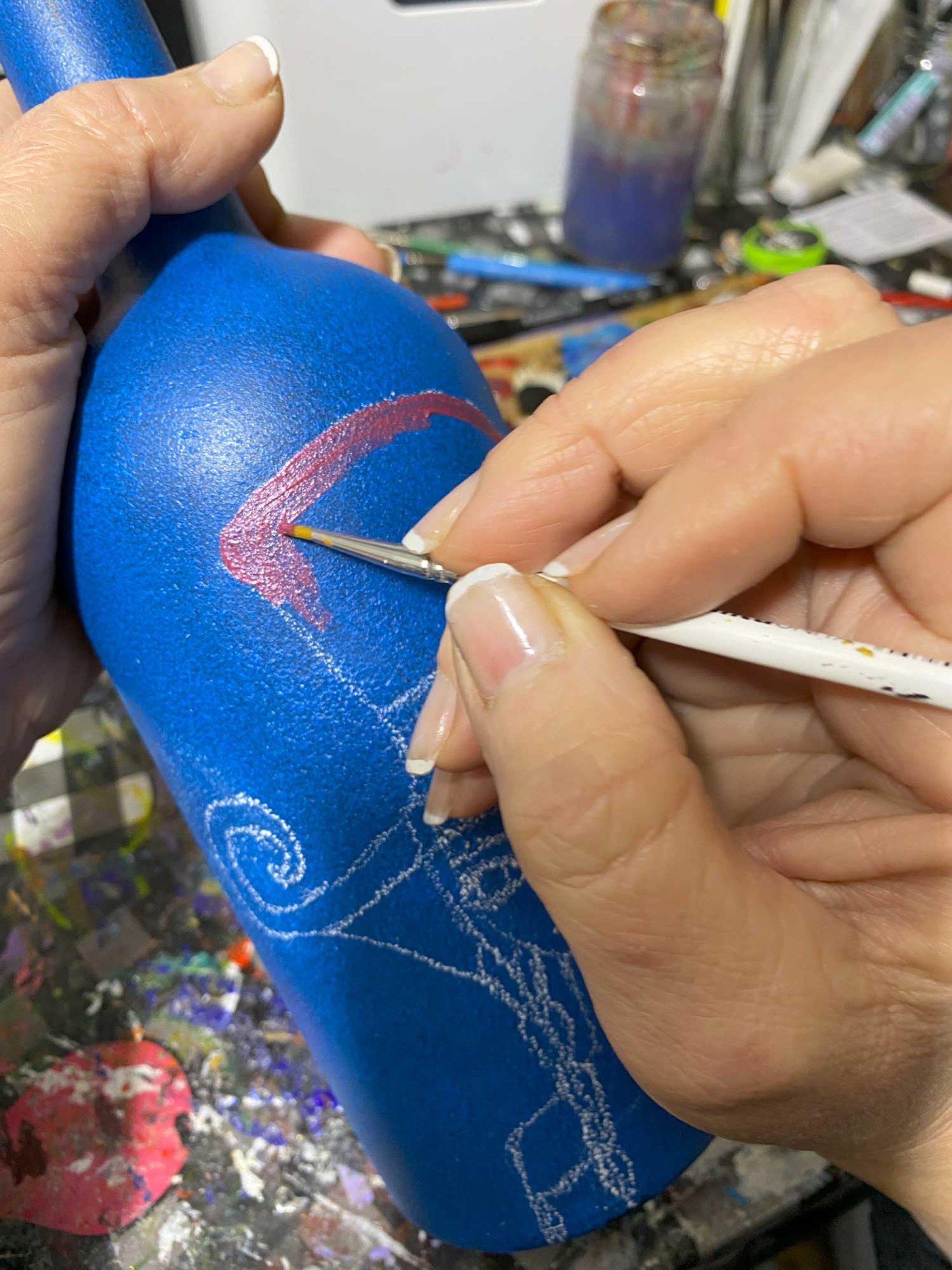 Ho voluto dipingere questa bottiglia lasciandomi guidare dal cuore e dalla natura.