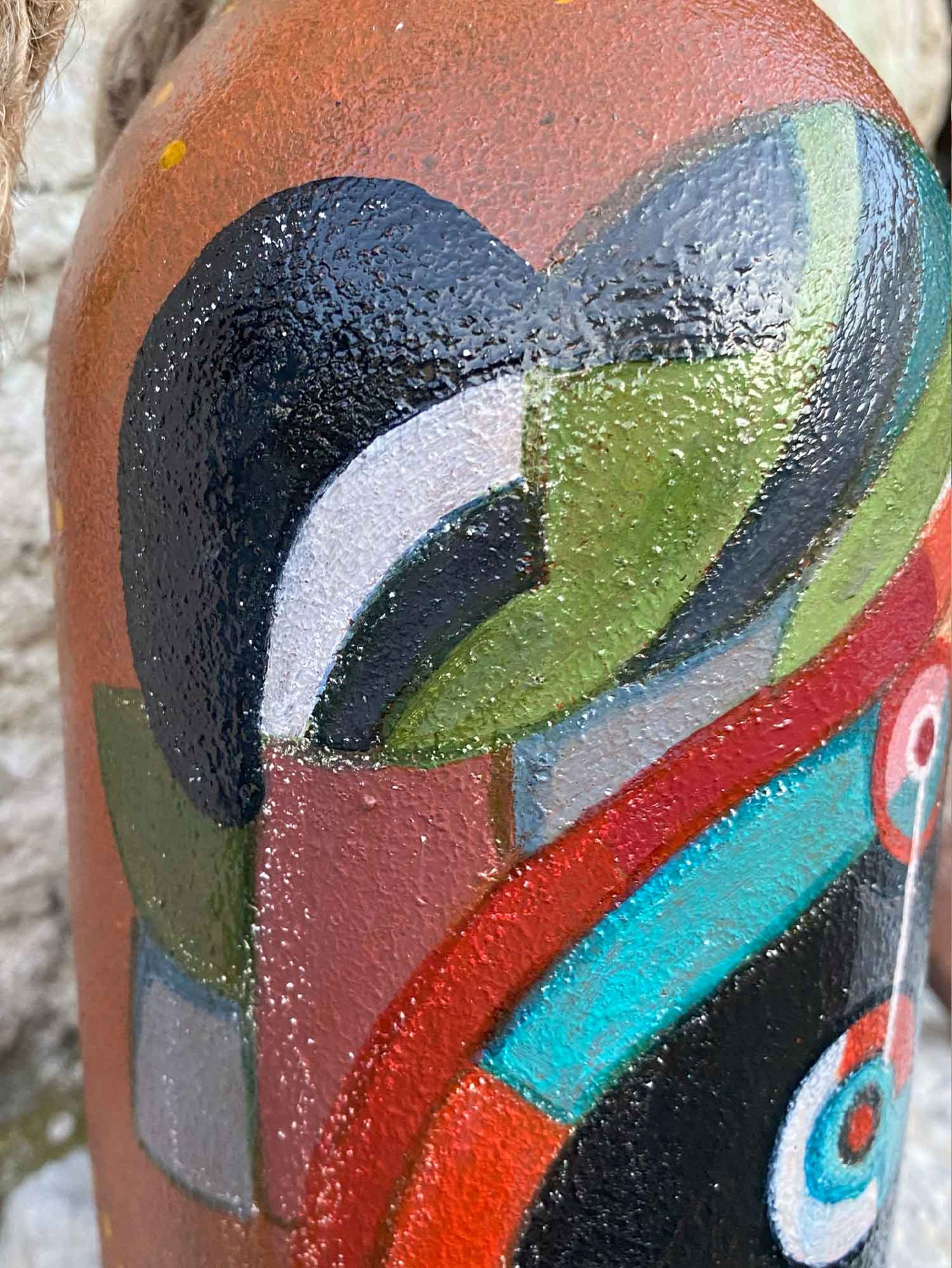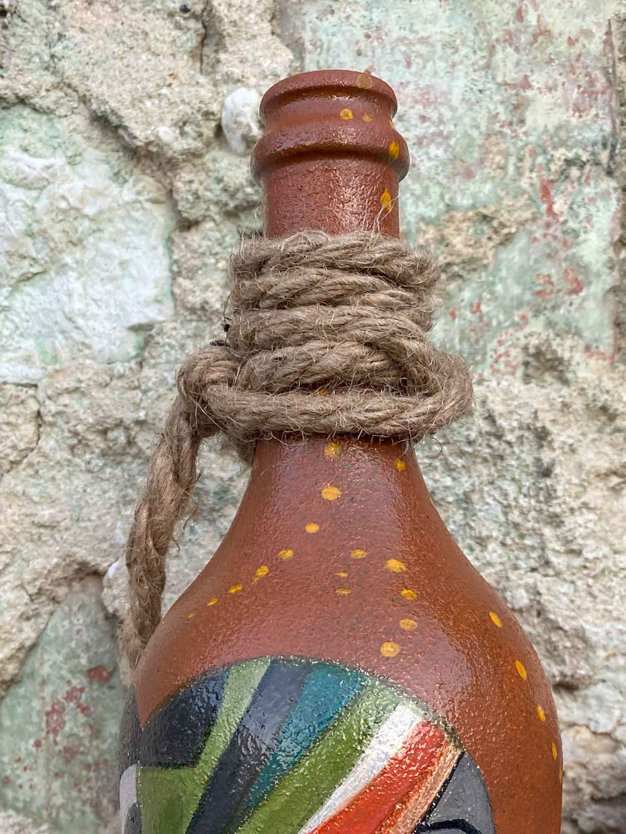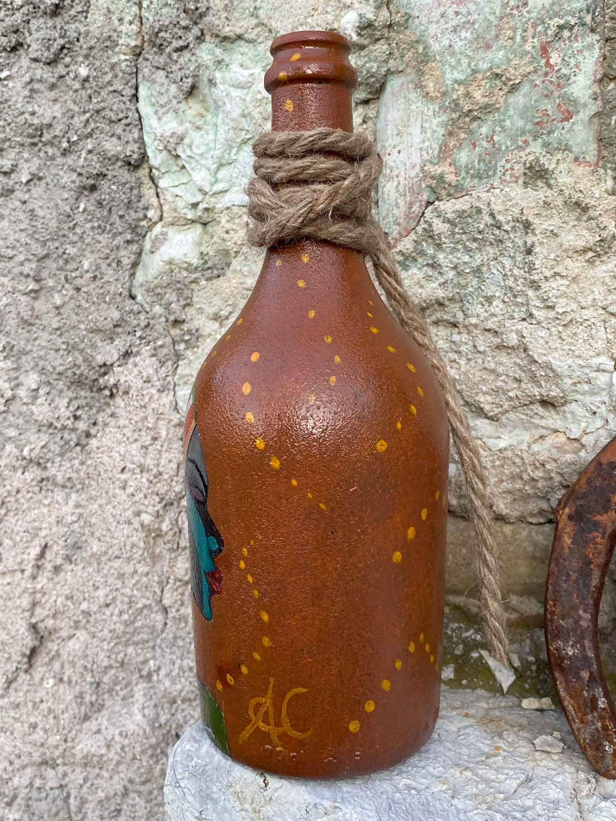 La figura di questa bottiglia dipinta a mano rappresenta un viaggio nelle profondità dell'anima, dove i contorni del visibile si fondono con quelli dell'invisibile.