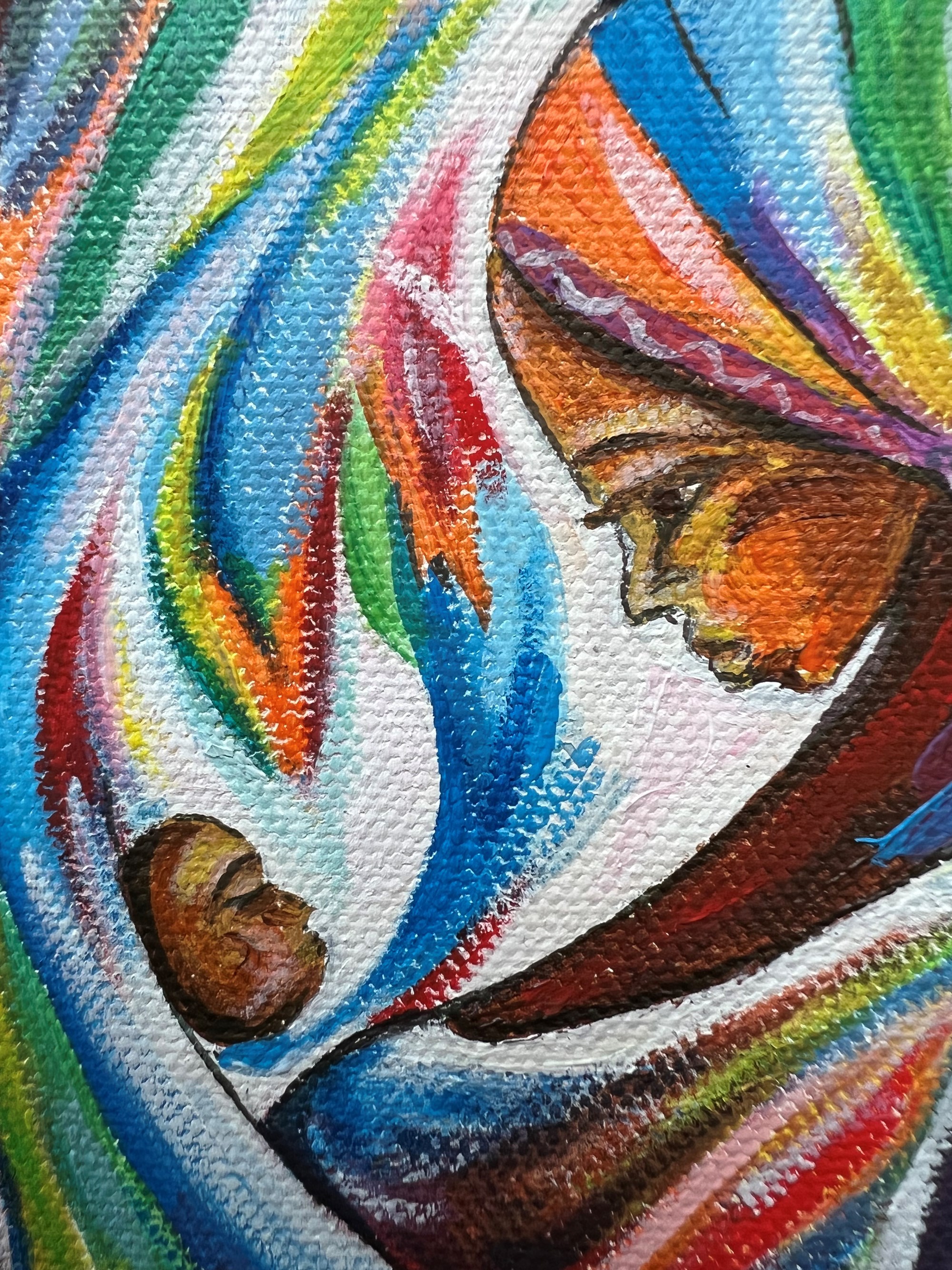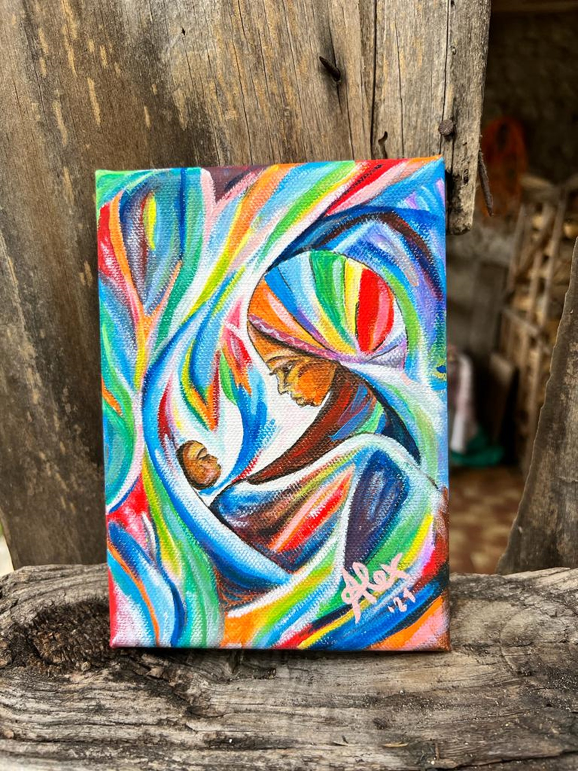 Un momento di pura tenerezza. Acrilico su tela Dimensioni: 13 x 18 cm
