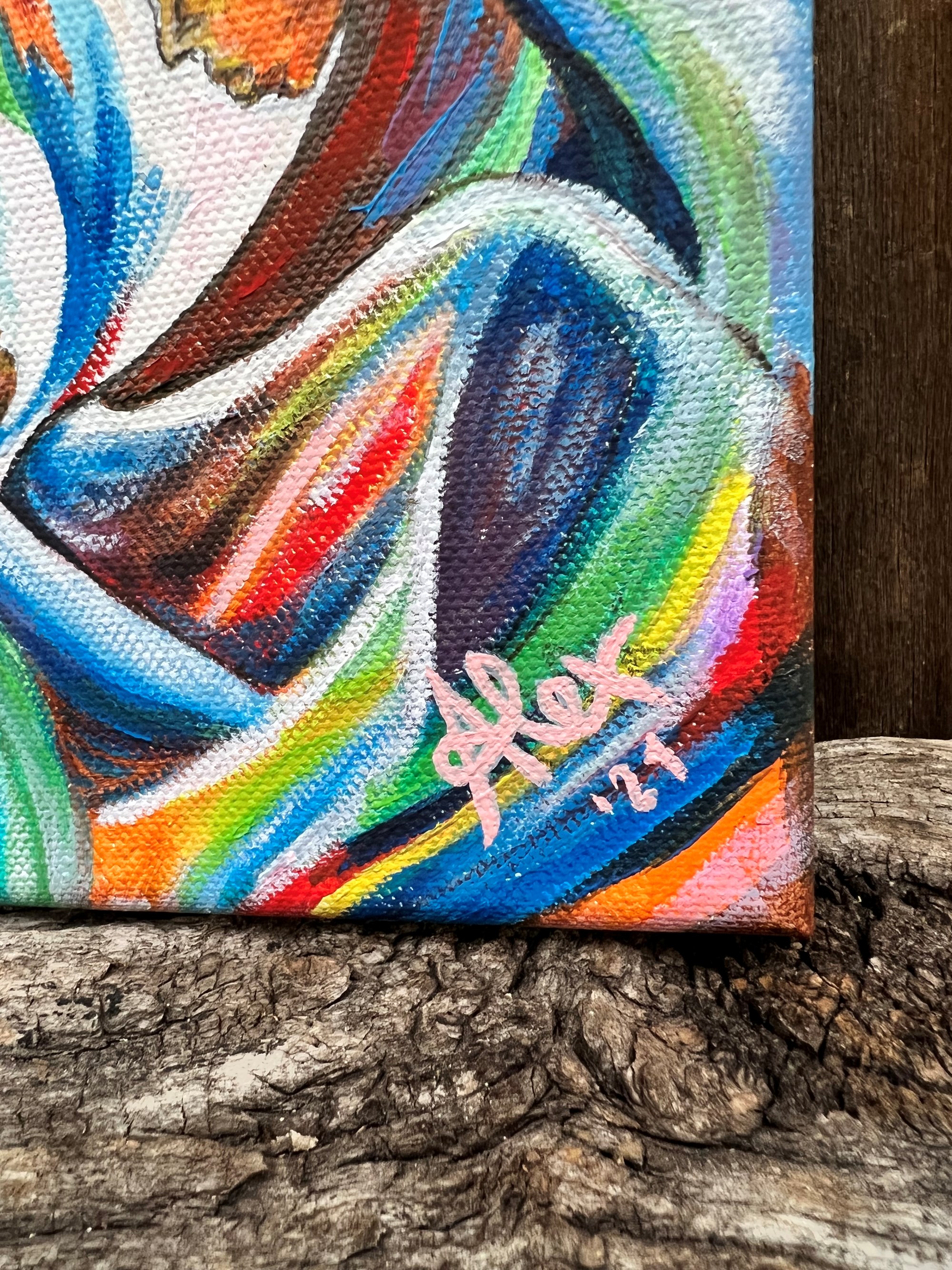 Un attimo di dolcezza in un mondo astratto Acrilico su tela Dimensioni: 13 x 18 cm