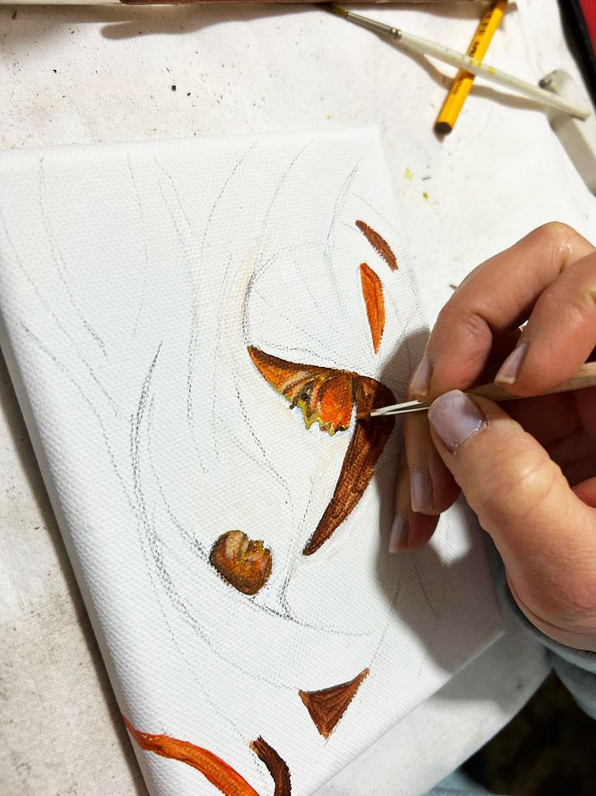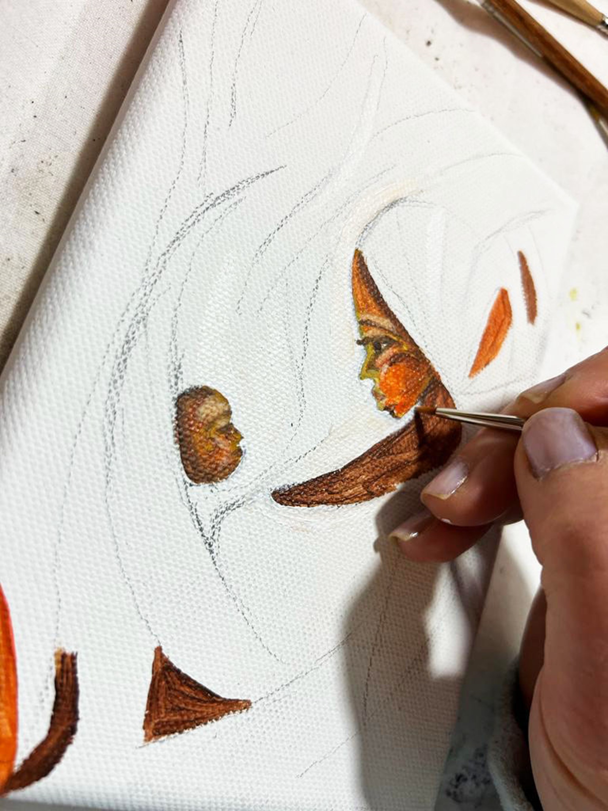 Viviamo in un mondo che spesso ci chiede di indossare maschere. Acrilico su tela, 30 x 45 cm.